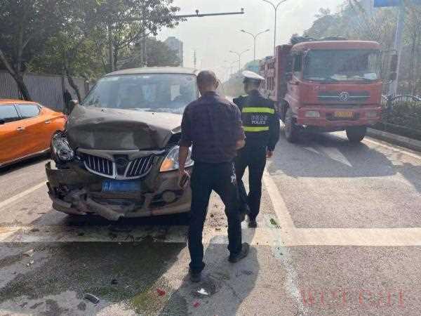 11月19日下午1点半左右,沙区110快处三大队K04民警巡逻到井双路井口方向,在一红绿灯处,发现两私家车发生了严重追尾事故,致使前车副驾驶有人头部受伤,已送往附近医院救治。
