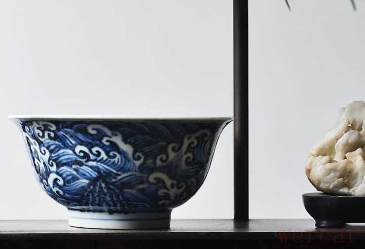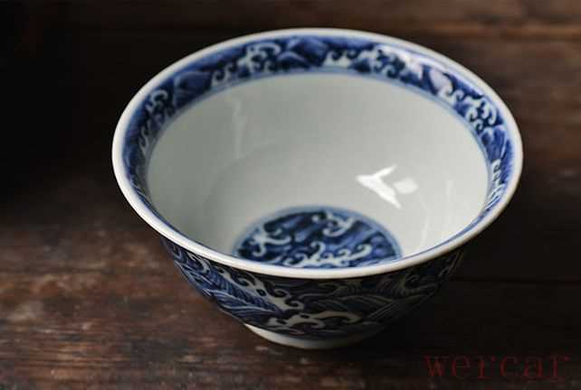 长窑制器仿宣德 手绘青花海浪纹宫碗