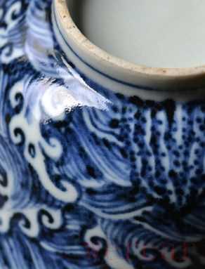 不过,福山寿海单独做为主角的并不算多。因为海上可以发生的故事太多,于是很容易变成背景而存在。最典型的当然是海水龙纹。虽然龙是天子的像征,但龙的纹样并非被皇家独占。即使明代的皇帝常常采用高压的政策,禁止民间使用,不过往往是禁而不止。而清代的皇帝则更为开明,甚至于官窑之中有五爪龙纹的瓷器残次品,居然都直接变卖,流入民间。原因居然是皇帝认为,这个纹样,民间早已广泛的使用,由他去吧。