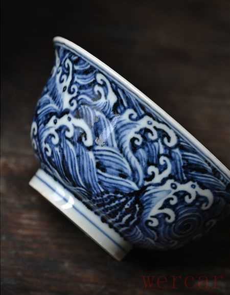 长窑制器仿宣德 手绘青花海浪纹宫碗(局部)